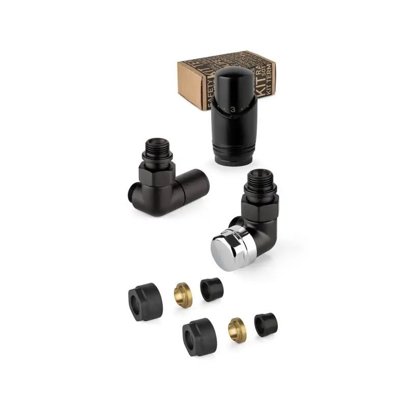 КИТ-двойноъгли вентили с aдаптори ф16 и термоглава ляви черни APM-Italy